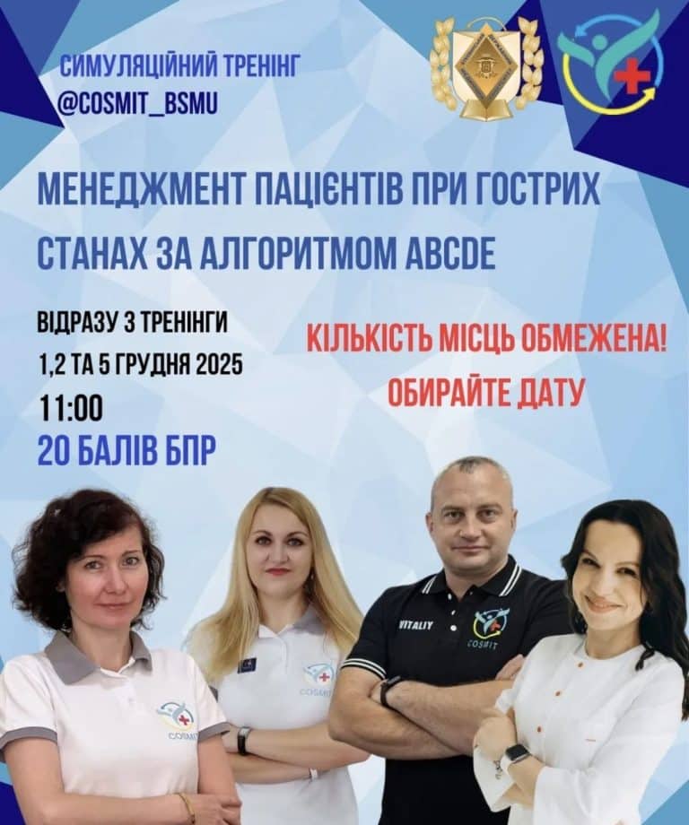 Запрошуємо лікарів та медичних сестер на симуляційний тренінг “Менеджмент пацієнтів при гострих станах за алгоритмом ABCDЕ”! 20 балів БПР Переваги нашого тренінгу: Реалістичні симуляції на