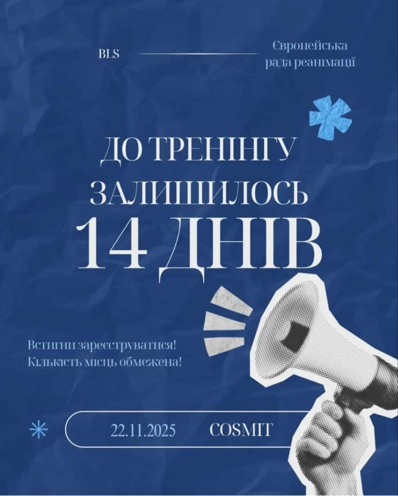 Тік-так… 14 днів до тренінгу, який може змінити життя! BLS (Basic Life Support) – це базові навички, які можуть врятувати життя у критичній ситуації. Під час тренінгу учасники відпрацьовують практичні